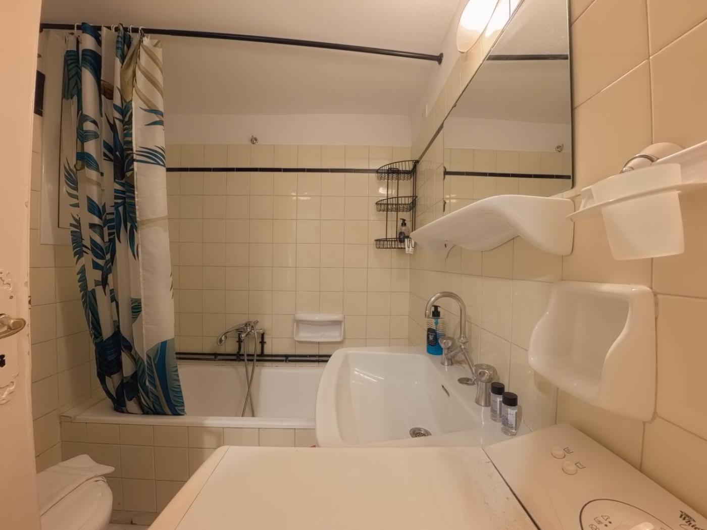 One-Bedroom Apartment. This air-conditioned apartment includes 1 living room, 1 separate bedroom and 1 bathroom with a bath or a shower. In the well-equipped kitchen, guests will find a stovetop, a refrigerator, kitchenware and an oven. The apartment offers a washing machine, soundproof walls, a dining area, a flat-screen TV, as well as city views. The unit has 2 beds.