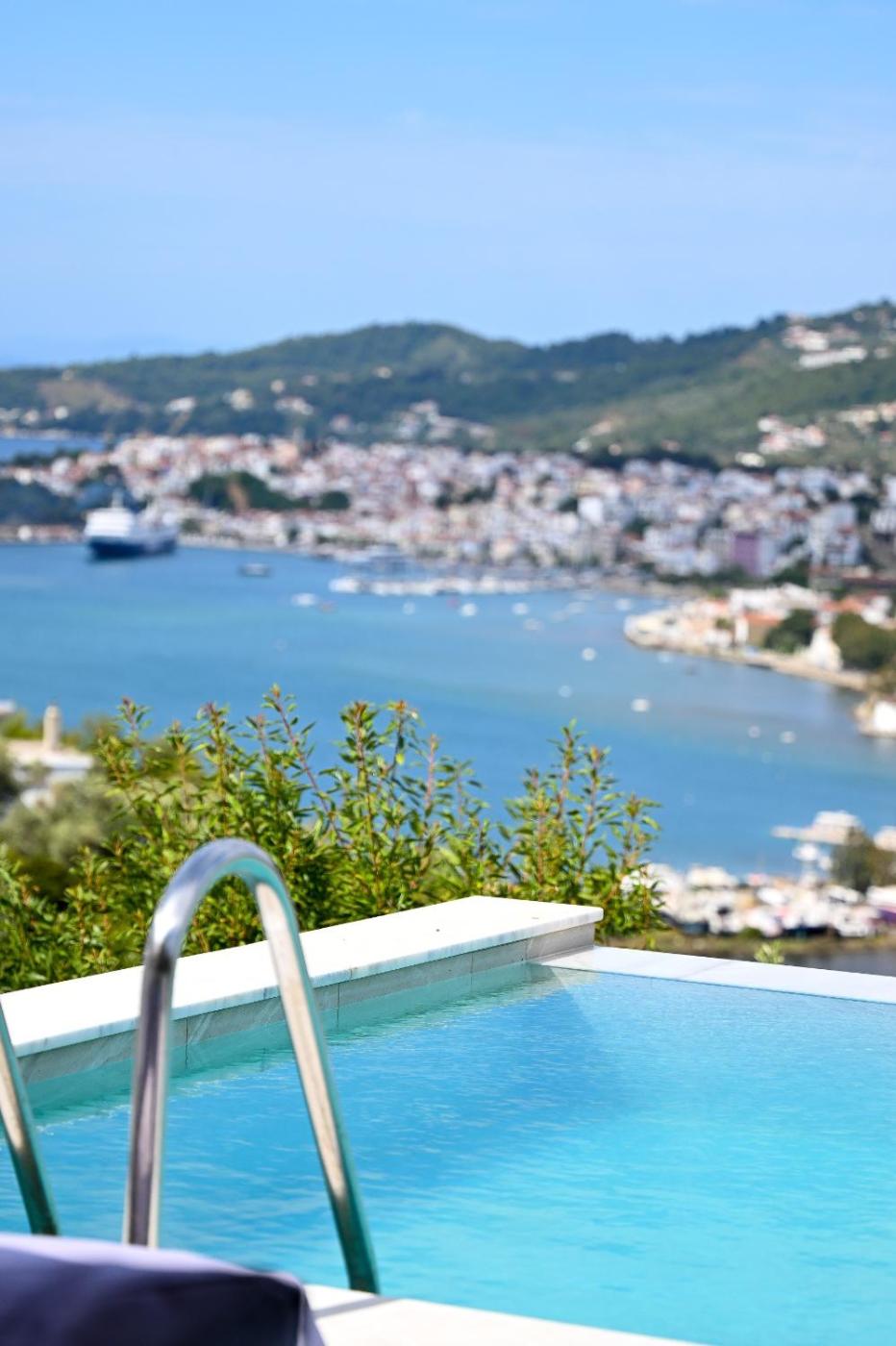 Villa with Sea View. Offering views over the Aegean Sea and Skiathos Town, this split-level villa comes with a garden, free WiFi access and free, on-site parking. It includes a living and dining area with fireplace, a fully equipped kitchen, 3 bedrooms and 2 bathroom, one with spa bath.